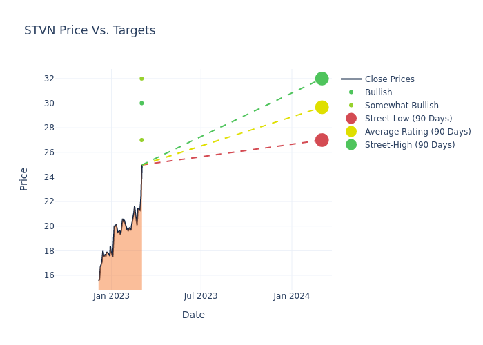 These 4 analysts have an average price target of $27.75 versus the current price of Stevanato Group at $24.91, implying upside.