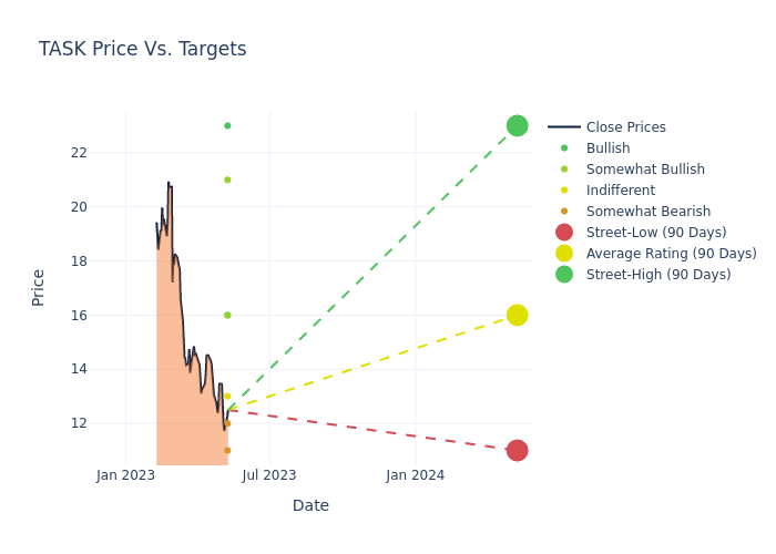 In the last 3 months, 10 analysts have offered 12-month price targets for TaskUs. The company has an average price target of $16.5 with a high of $23.00 and a low of $11.00.