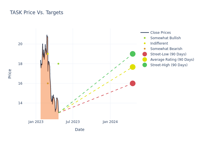 According to 4 analyst offering 12-month price targets in the last 3 months, TaskUs has an average price target of $18.25 with a high of $20.00 and a low of $16.00.