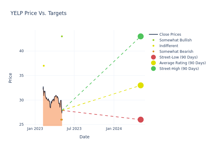These 6 analysts have an average price target of $34.17 versus the current price of Yelp at $28.029, implying upside.