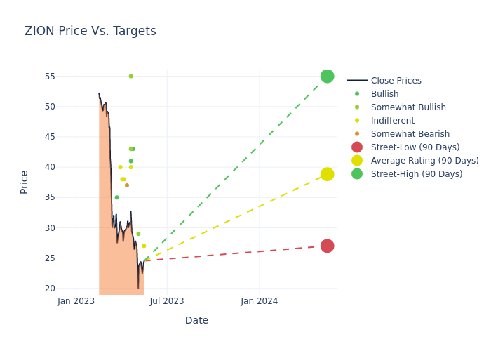 According to 14 analyst offering 12-month price targets in the last 3 months, Zions Bancorp has an average price target of $40.0 with a high of $60.00 and a low of $27.00.