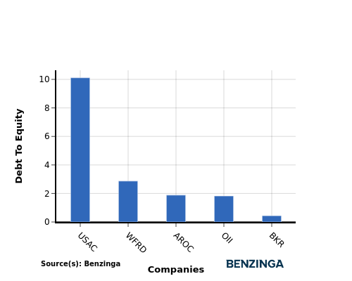 When assessing Baker Hughes against its top 4 peers using the Debt-to-Equity ratio, the following comparisons can be made: