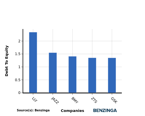 In terms of the debt-to-equity ratio, Eli Lilly and Co has a relatively higher level of debt of 2.34 compared to its top 4 peers.