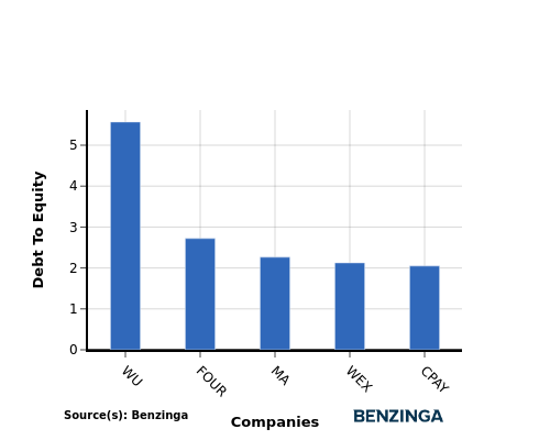 In terms of the Debt-to-Equity ratio, Mastercard stands in comparison with its top 4 peers, leading to the following comparisons: