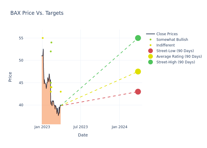 In the last 3 months, 11 analysts have offered 12-month price targets for Baxter Intl. The company has an average price target of $49.73 with a high of $60.00 and a low of $43.00.