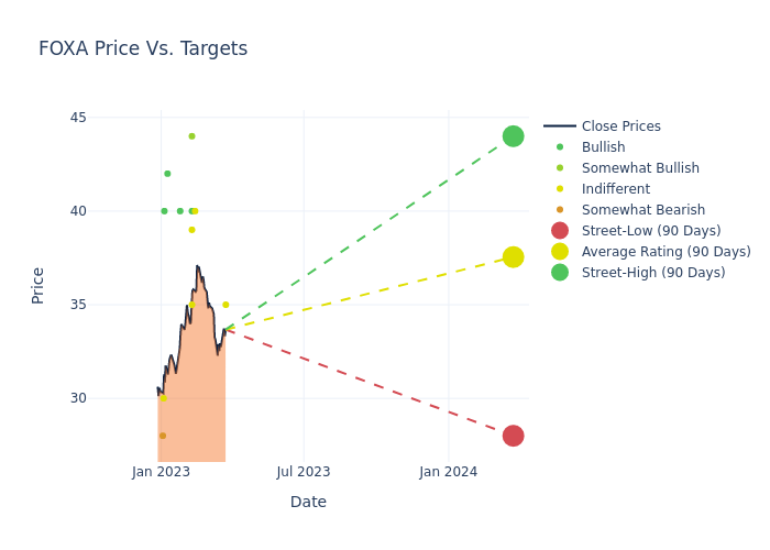 In the last 3 months, 11 analysts have offered 12-month price targets for Fox. The company has an average price target of $37.55 with a high of $44.00 and a low of $28.00.