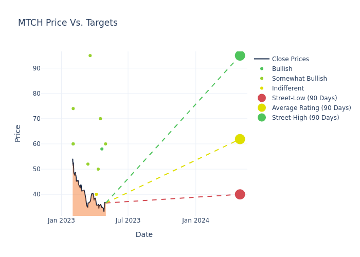 In the last 3 months, 11 analysts have offered 12-month price targets for Match Group. The company has an average price target of $61.18 with a high of $95.00 and a low of $40.00.