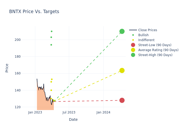 In the last 3 months, 12 analysts have offered 12-month price targets for BioNTech. The company has an average price target of $169.33 with a high of $216.00 and a low of $128.00.