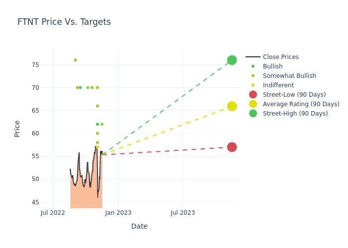 According to 14 analyst offering 12-month price targets in the last 3 months, Fortinet has an average price target of $65.93 with a high of $76.00 and a low of $57.00.