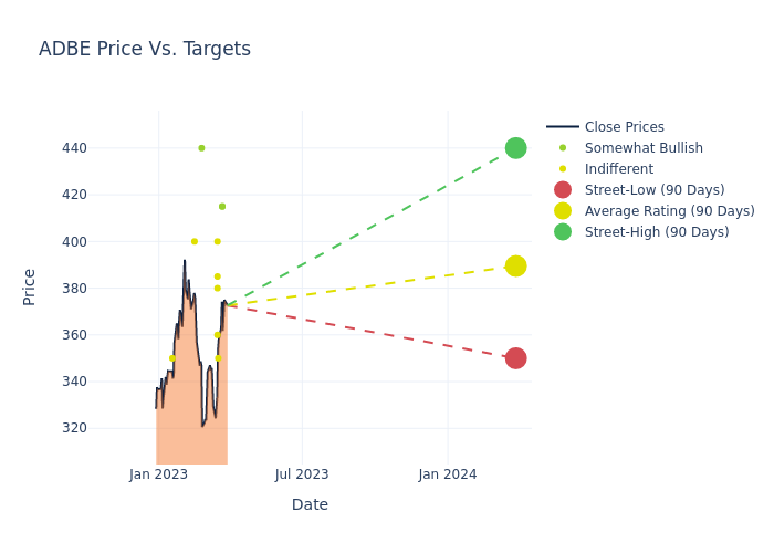 These 15 analysts have an average price target of $394.0 versus the current price of Adobe at $372.58, implying upside.