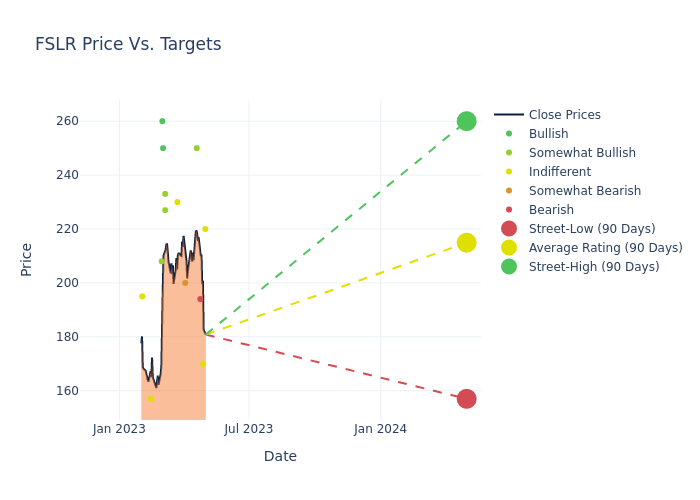 In the last 3 months, 17 analysts have offered 12-month price targets for First Solar. The company has an average price target of $215.71 with a high of $260.00 and a low of $157.00.