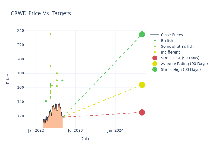 In the last 3 months, 22 analysts have offered 12-month price targets for CrowdStrike Holdings. The company has an average price target of $163.14 with a high of $235.00 and a low of $125.00.