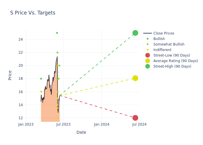 According to 28 analyst offering 12-month price targets in the last 3 months, SentinelOne has an average price target of $18.95 with a high of $26.00 and a low of $12.00.