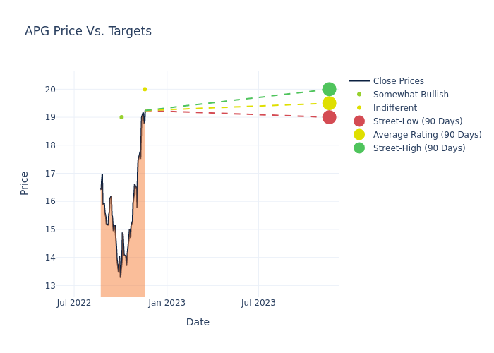 According to 4 analyst offering 12-month price targets in the last 3 months, APi Gr has an average price target of $18.0 with a high of $20.00 and a low of $15.00.