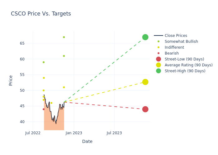 These 4 analysts have an average price target of $56.25 versus the current price of Cisco Systems at $46.255, implying upside.