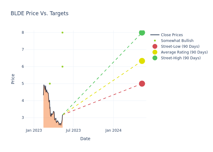 These 5 analysts have an average price target of $6.7 versus the current price of Blade Air Mobility at $3.09, implying upside.
