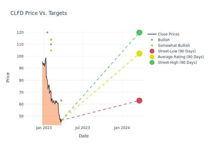 These 6 analysts have an average price target of $108.83 versus the current price of Clearfield at $46.32, implying upside.
