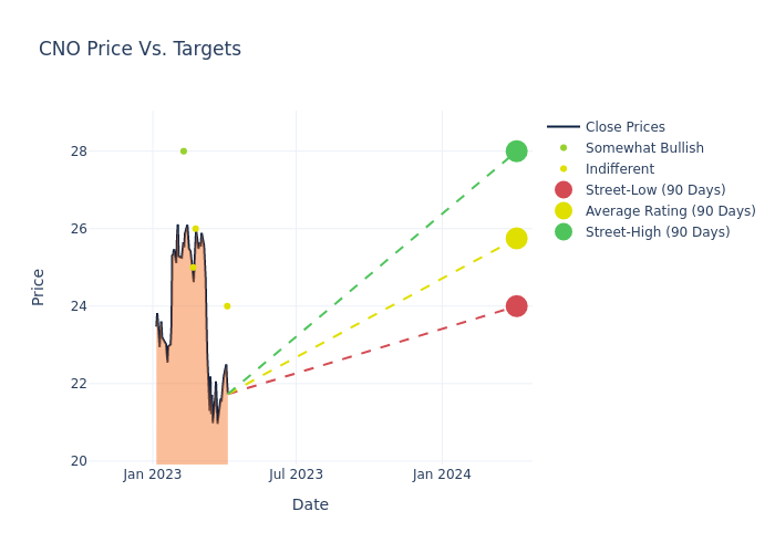 Within the last quarter, CNO Finl Group (NYSE:CNO) has observed the following analyst ratings: