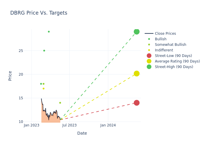 According to 6 analyst offering 12-month price targets in the last 3 months, DigitalBridge Gr has an average price target of $22.5 with a high of $32.00 and a low of $14.00.