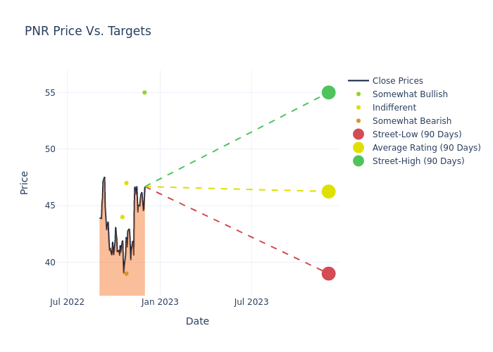 These 6 analysts have an average price target of $45.17 versus the current price of Pentair at $46.685, implying downside.