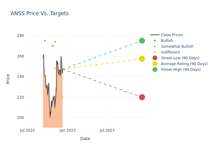 In the last 3 months, 7 analysts have offered 12-month price targets for Ansys. The company has an average price target of $246.0 with a high of $275.00 and a low of $210.00.