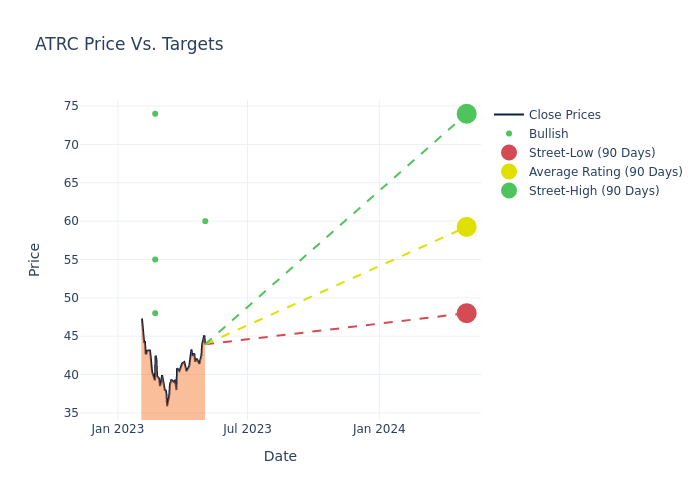 In the last 3 months, 7 analysts have offered 12-month price targets for AtriCure. The company has an average price target of $62.0 with a high of $81.00 and a low of $48.00.