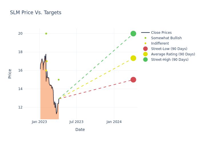 In the last 3 months, 7 analysts have offered 12-month price targets for SLM. The company has an average price target of $16.86 with a high of $20.00 and a low of $14.00.