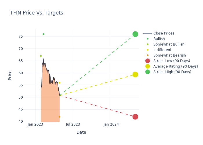 These 7 analysts have an average price target of $56.43 versus the current price of Triumph Financial at $50.75, implying upside.