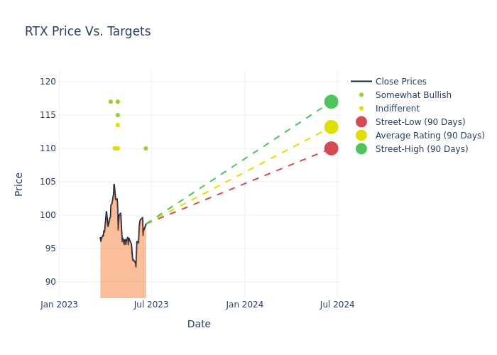 Within the last quarter, Raytheon Technologies (NYSE:RTX) has observed the following analyst ratings: