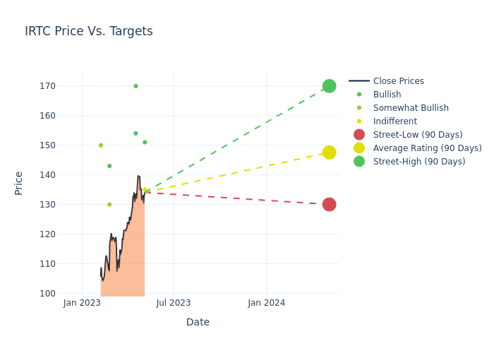 According to 9 analyst offering 12-month price targets in the last 3 months, iRhythm Technologies has an average price target of $144.0 with a high of $170.00 and a low of $130.00.