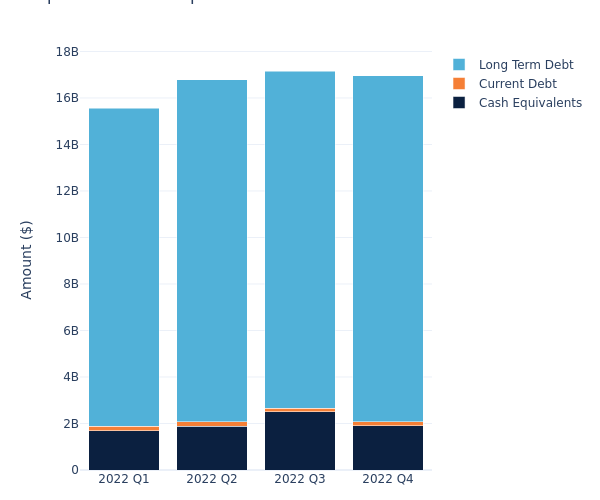 Based on Equinix’s balance sheet as of February 17, 2023, long-term debt is at $14.90 billion and current debt is at $161.27 million, amounting to $15.06 billion in total debt. Adjusted for $1.91 billion in cash-equivalents, the company’s net debt is at $13.15 billion.