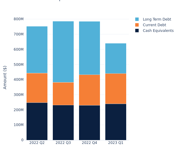Let’s define some of the terms we used in the paragraph above. Current debt is the portion of a company’s debt which is due within 1 year, while long-term debt is the portion due in more than 1 year. Cash equivalents includes cash and any liquid securities with maturity periods of 90 days or less. Total debt equals current debt plus long-term debt minus cash equivalents.