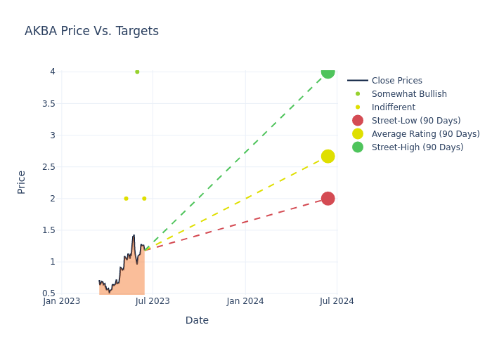 In the last 3 months, 8 analysts have offered 12-month price targets for Akebia Therapeutics. The company has an average price target of $2.16 with a high of $4.00 and a low of $1.25.