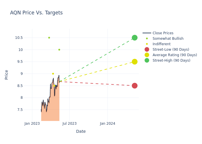 In the last 3 months, 7 analysts have offered 12-month price targets for Algonquin Power. The company has an average price target of $9.21 with a high of $10.50 and a low of $8.00.