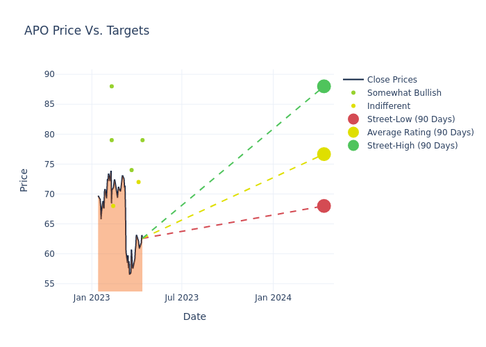 These 8 analysts have an average price target of $76.12 versus the current price of Apollo Global Management at $62.55, implying upside.