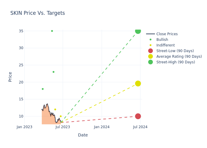 In the last 3 months, 5 analysts have offered 12-month price targets for Beauty Health. The company has an average price target of $19.6 with a high of $35.00 and a low of $10.00.