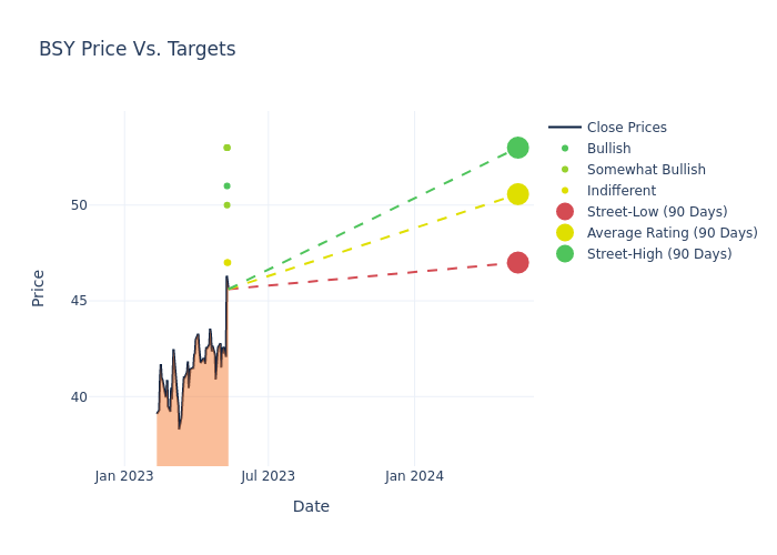 In the last 3 months, 13 analysts have offered 12-month price targets for Bentley Systems. The company has an average price target of $48.23 with a high of $53.00 and a low of $39.00.