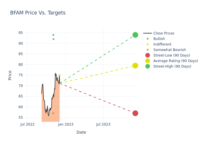 In the last 3 months, 7 analysts have offered 12-month price targets for Bright Horizons Family. The company has an average price target of $80.14 with a high of $108.00 and a low of $57.00.