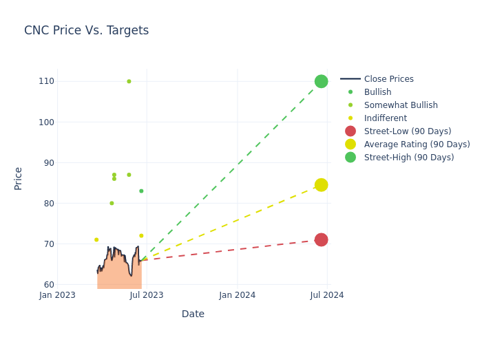 In the last 3 months, 10 analysts have offered 12-month price targets for Centene. The company has an average price target of $87.0 with a high of $110.00 and a low of $72.00.