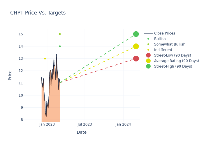 In the last 3 months, 4 analysts have offered 12-month price targets for ChargePoint Hldgs. The company has an average price target of $14.5 with a high of $16.00 and a low of $13.00.