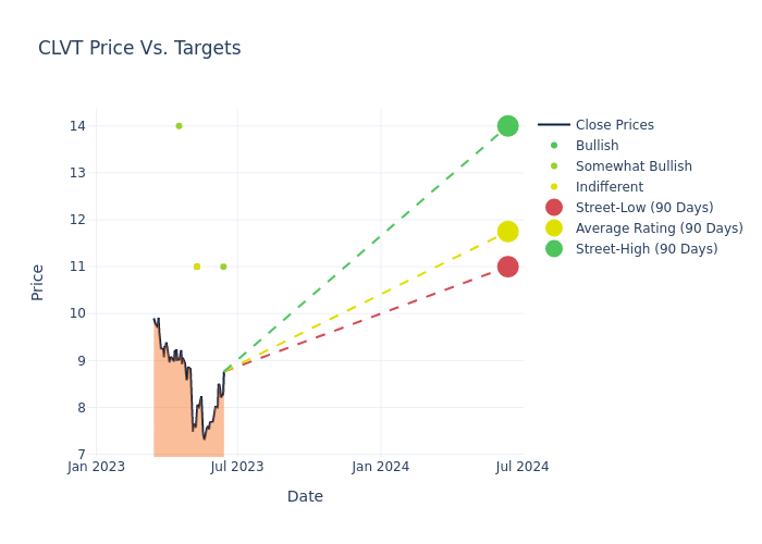 According to 4 analyst offering 12-month price targets in the last 3 months, Clarivate has an average price target of $11.75 with a high of $14.00 and a low of $11.00.