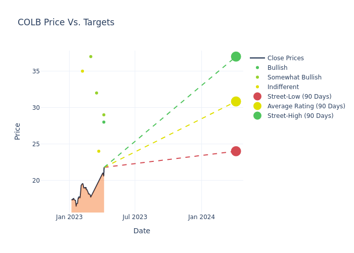 Over the past 3 months, 7 analysts have published their opinion on Columbia Banking System (NASDAQ:COLB) stock. These analysts are typically employed by large Wall Street banks and tasked with understanding a company’s business to predict how a stock will trade over the upcoming year.