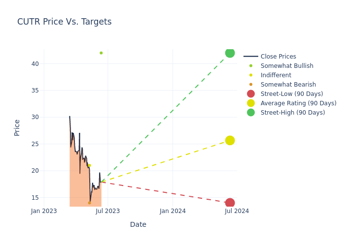 According to 6 analyst offering 12-month price targets in the last 3 months, Cutera has an average price target of $35.17 with a high of $46.00 and a low of $14.00.
