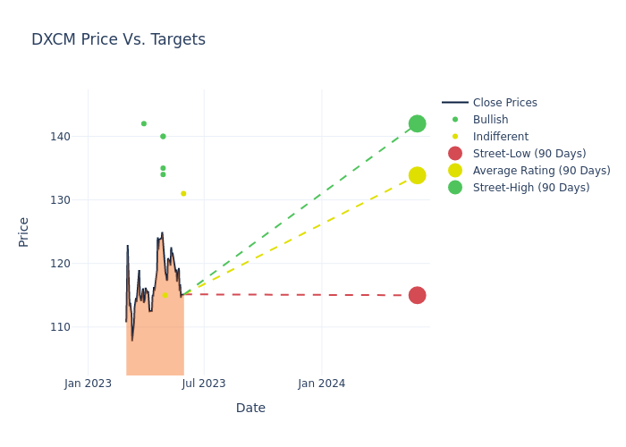In the last 3 months, 9 analysts have offered 12-month price targets for DexCom. The company has an average price target of $134.11 with a high of $142.00 and a low of $115.00.