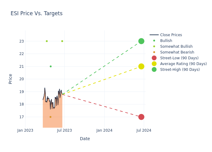 According to 4 analyst offering 12-month price targets in the last 3 months, Element Solutions has an average price target of $21.0 with a high of $23.00 and a low of $17.00.