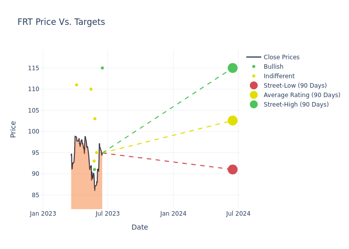 In the last 3 months, 8 analysts have offered 12-month price targets for Federal Realty Investment. The company has an average price target of $103.75 with a high of $115.00 and a low of $91.00.
