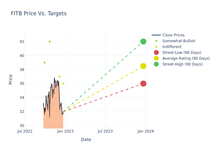 According to 6 analyst offering 12-month price targets in the last 3 months, Fifth Third Bancorp has an average price target of $38.5 with a high of $42.00 and a low of $36.00.