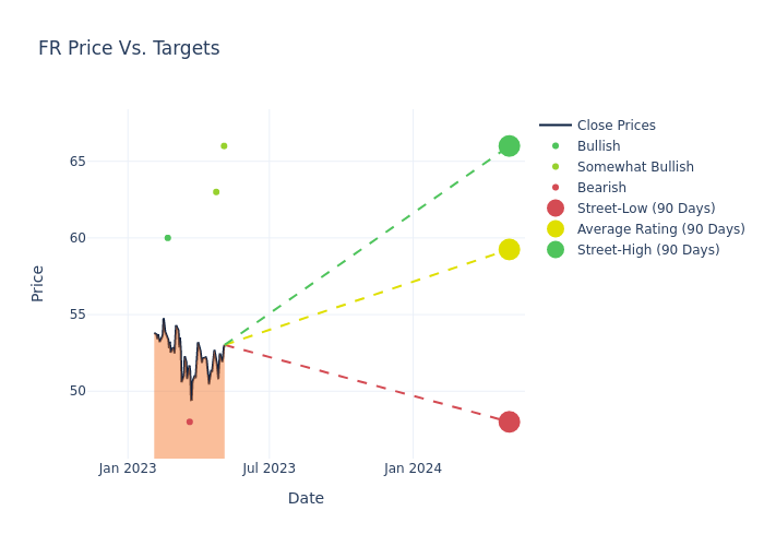 These 5 analysts have an average price target of $60.4 versus the current price of First Industrial Realty at $52.97, implying upside.