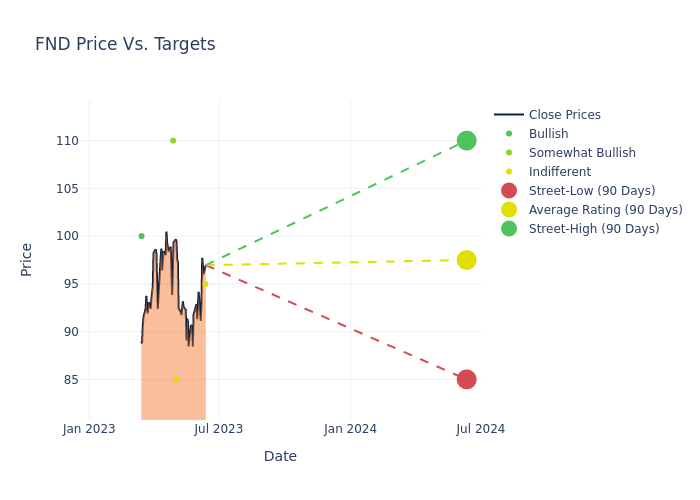 According to 4 analyst offering 12-month price targets in the last 3 months, Floor & Decor Hldgs has an average price target of $97.5 with a high of $110.00 and a low of $85.00.
