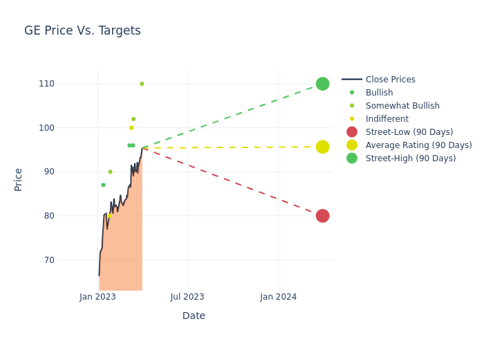 In the last 3 months, 17 analysts have offered 12-month price targets for General Electric. The company has an average price target of $91.18 with a high of $110.00 and a low of $72.00.